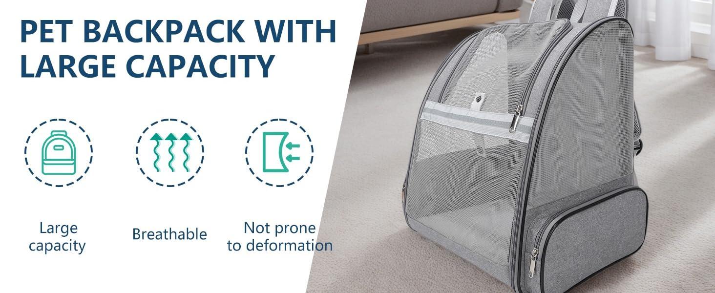• Large space design for a variety of pets:The bag measures 12.5''*11''*15.7'' and is suitable for cats up to 17 pounds and dogs up to 11 pounds, as well as other small/medium sized pets, so that your furry child has plenty of room to move around and travel more comfortably.