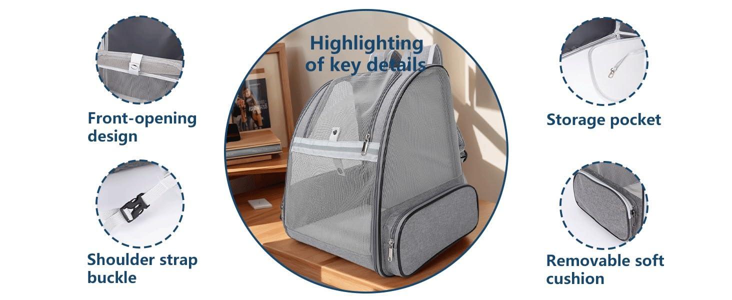 • Three sides ventilation:PVC mesh ventilation design on three sides to ensure air circulation, reduce the feeling of heat, so that your pet in the journey to stay fresh and comfortable.